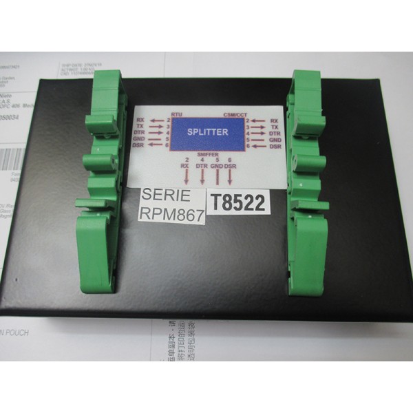 El módulo SPLITTER es un sistema electrónico diseñado a medida para diagnóstico y pruebas remotas de comunicación RS232 entre en centro de control y las diferentes subestaciones eléctricas, permitiendo identificar rápidamente fallas en los equipos de comunicación. Puede ser adaptado según las necesidades de los clientes. Su fabricación reduce tiempos de importación, costos y se tiene un soporte local dispuesto a solucionar las necesidades del cliente.